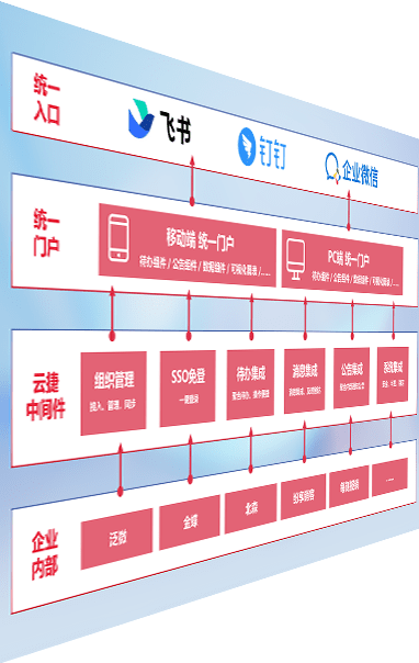 对协作平台提供支持服务,,,支持企业应用与协作平台对接,,,包含组织同步、、、、消息集成、、待办集成等。。支持目前主流的协作平台:钉钉、、、企微和飞书。。。