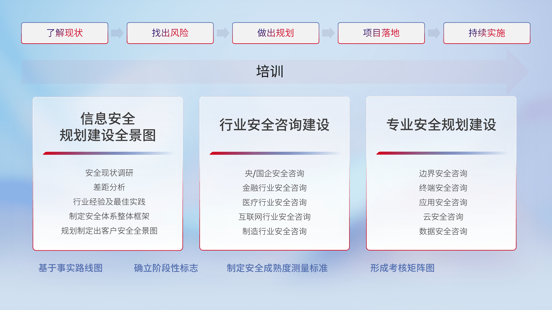 通过专业的法律咨询解读、、、合规架构体现、、差异化解决方案、、、测试实施支持等服务,,,,为客户量身打造等保合规体系。。。