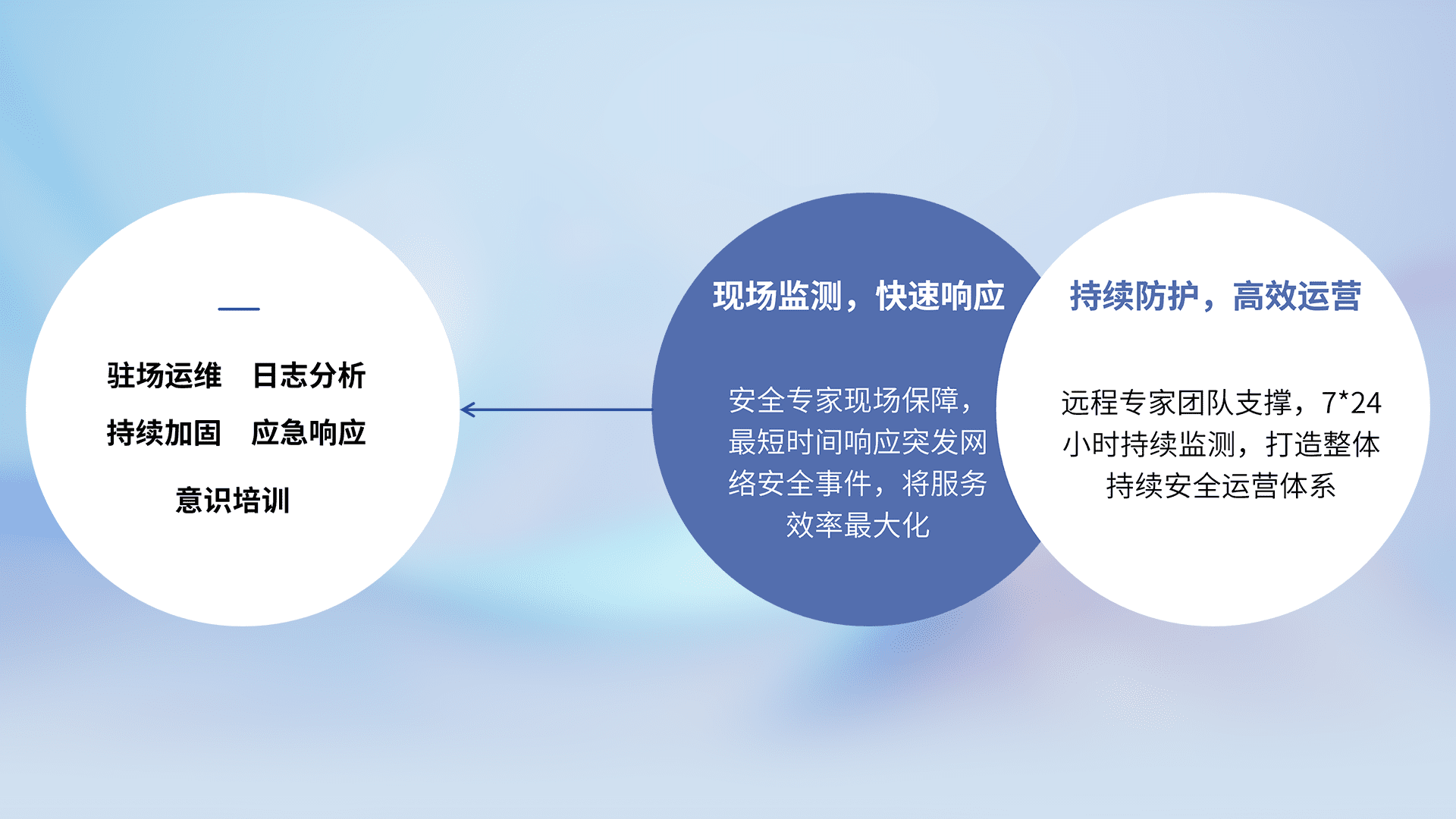 7X24小时持续监测安全事件,保持安全策略有效性,降低资产脆弱性风险,,,,精准拦截黑客攻击,,,,减少被黑客利用的机会,,,,第一时间遏制,,,降低损失。。。